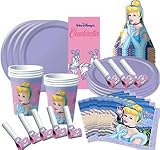 - Complete kit for a girl's birthday party on the Cinderella theme includes tablecover, napkins, plates, cups, cone hats and blowouts